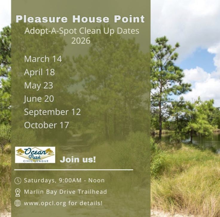 This is a OPCL members only event so pay your 2026 dues today! ( dues are current ONLY if paid since January 2026. Dues are by calendar year regardless of when you paid in 2025). All residents of Ocean Park are invited to become members of the civic league and join us on April 25th! Only $25 for the household!