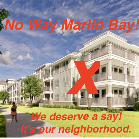 The strongest argument we have is that our neighborhood is unique and beloved for its character. Most of us moved here because of that special character that has been enshrined by the City’s Comprehensive and Shore Drive Corridor Plans. You have a voice in preserving our neighborhood. The properties at Marlin Bay Drive should be developed in accordance with the existing zoning and City planning guidelines: townhouses, duplexes and single-family homes, not a large high-density multi-family using erroneous mixed-use rezoning.