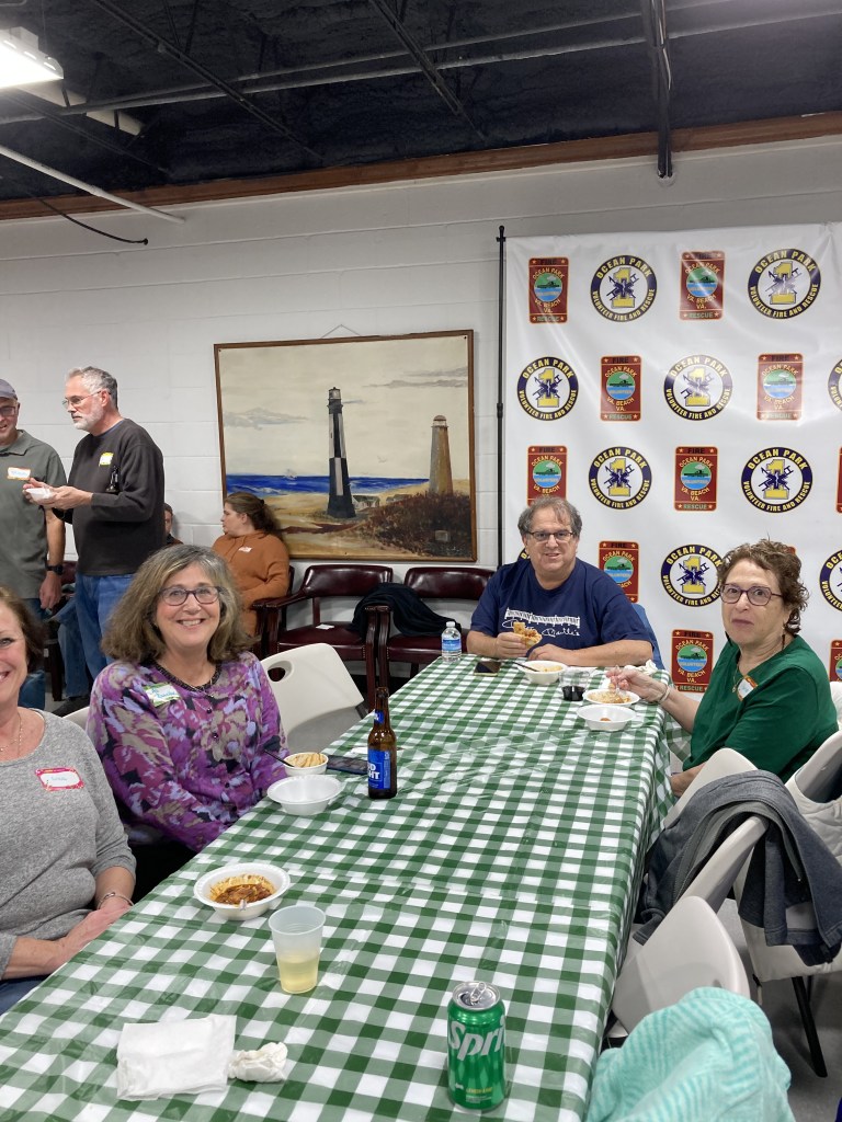 From President Danny Murphy: A huge thank you to everyone who attended and especially to the gang of cooks! You are all winners! We’d also like to thank Branan and the Ocean Park Volunteer Rescue Squad staff, for offering their space and their help with the event! Big thanks to Jim Andersen and all the Tidewater Bluegrass Music Association musicians who gave us awesome music for the evening! Thank you to Officer Wroblewski for his update on recent events in the neighborhood and to Councilman Joash Schulman for coming out to visit with us. A big thanks is owed to the members of the OPCL Board: Shane Abell, Christy Allen, Jill Doczi, Andrea Lindemann, Blake Norris, and Brian Snyder and to the Social Committee: Jenny Snyder, Natalie McIntyre, Jay Montgomery, Christy Allen, Joanne Lapin Parker et al for making the event such a success! Bravo! Thank you to all the volunteers who helped set up and clean up! Thanks also to Tim Lindemann , the fire pit captain and to Betty Dierstein, former secretary and prize fabricator-the aprons are great!