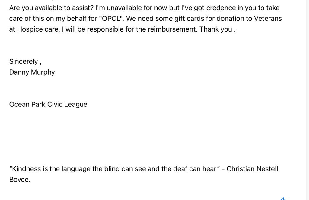 If you receive this email that looks like it is from Danny Murphy, president of OPCL please delete! It is a scam email .
