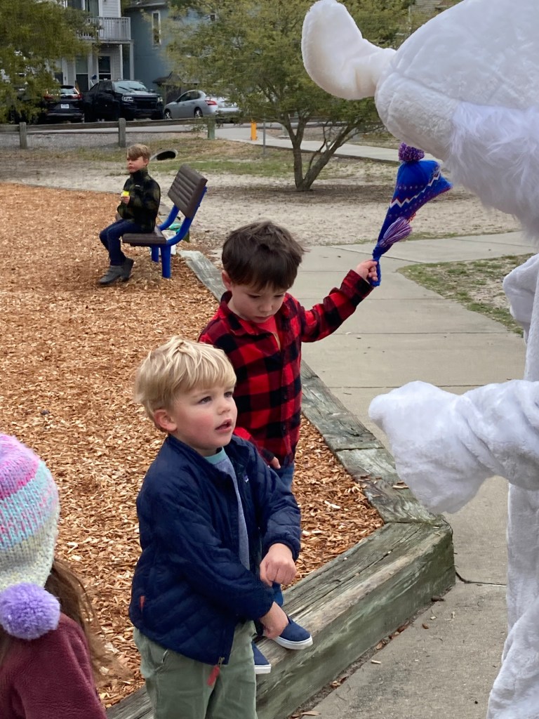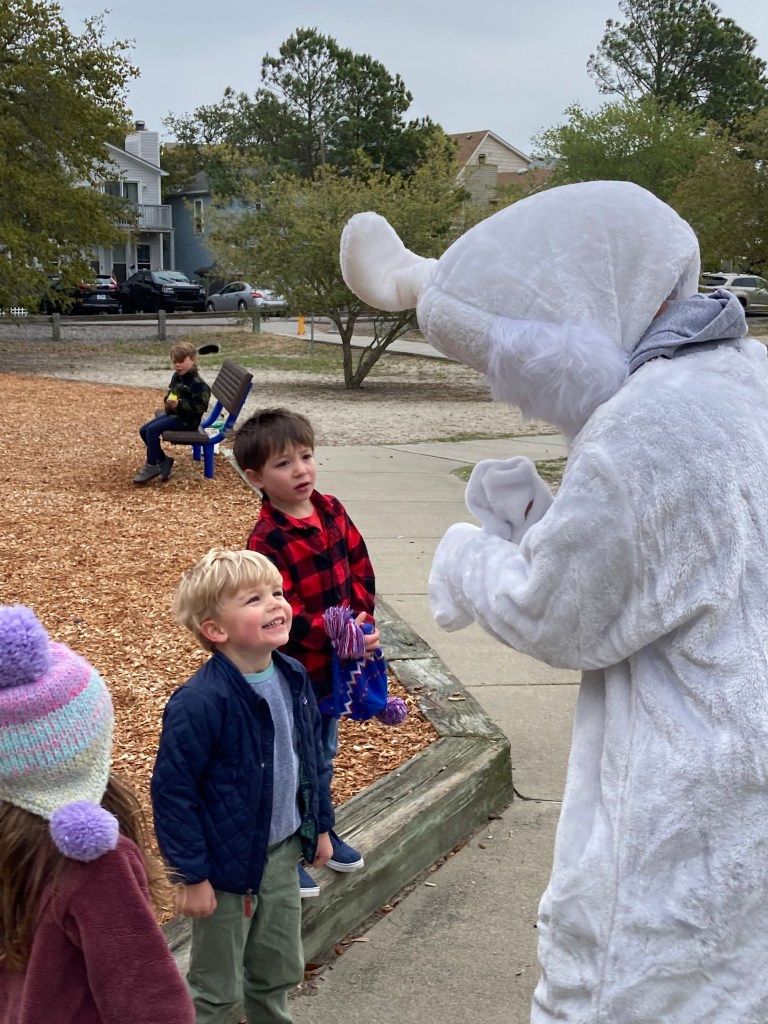 In spite of some brisk temperatures on Saturday, April 6th, Ocean Park families gathered for the first annual Pop Up Easter Egg Hunt at Loch Haven Park by the Brock Center. It was great to see so many neighbors! Huge thanks to the Easter Bunny who had the kids hopping with him to keep warm! He got lots of smiles, high fives and treats! “The kids were so generous-they kept giving me their candy!” he said.