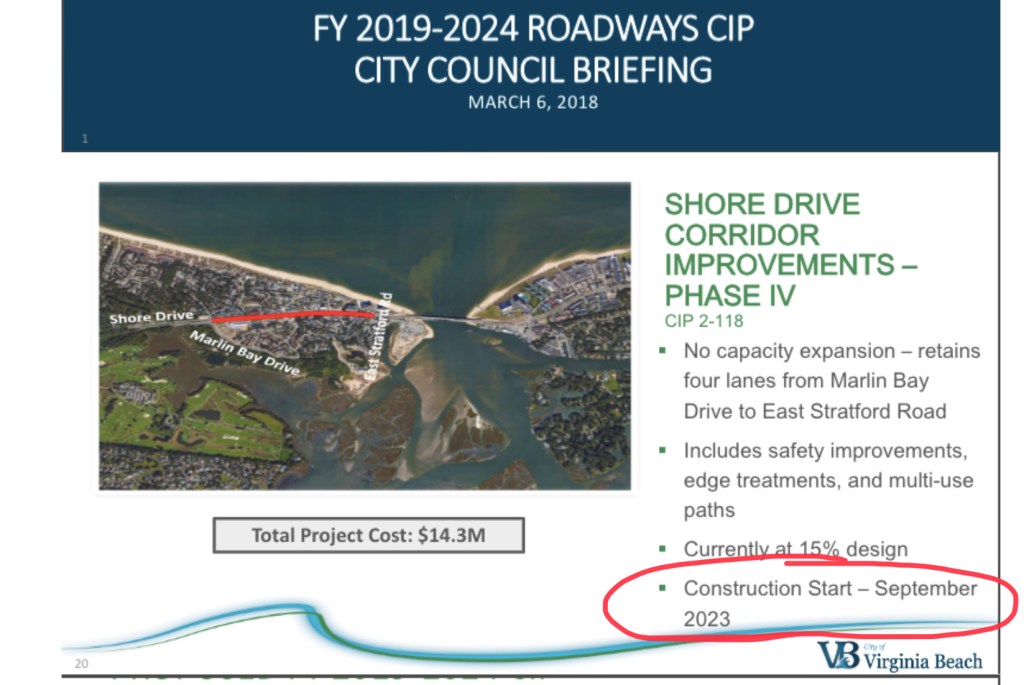 What is Phase IV? Long story short: it is substantial improvements to Shore Dr. west of the Lesner Bridge (Ocean Park) to include bike lanes, sidewalks, stormwater mitigation measures, enhanced lighting and crosswalks.