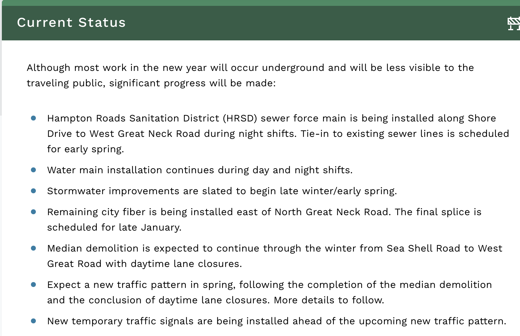 Here are the latest posts about Shore Dr. Improvements Phase III from the City of Virginia Beach Public Works site: