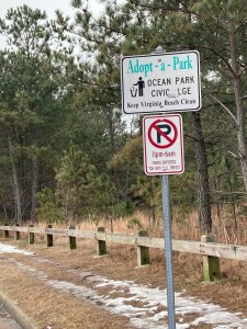 This photo is from one of the earliest cleanups in 2014. The Ocean Park Civic League has actually been conducting cleanups of Pleasure House Point Natural Area since we became the Adopt-A-Spot sponsors in 2013!! Of course, it’s an ongoing process that needs many hands to keep it going! When we have a clean up we meet at the corner of Ocean Tides Drive and Marlin Bay and sign in there. Mary will have orange bags and grabbers, courtesy of the Civic League, as well as warm cornbread and chocolate muffins for our volunteers!! Also non-food items for the kids who are always welcome to participate with their parents!! Dress for the weather! Long pants and sturdy shoes or boots are recommended when going “off-trail” as there may be briars, etc. Work gloves are highly recommended if you have them! Any amount of time is appreciated! See YOU there!!