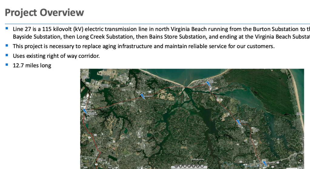 Dominion Power is replacing Line 27 which will impact Shore Dr. They presented this information at the Bayfront Advisory Commission Meeting on March 20.