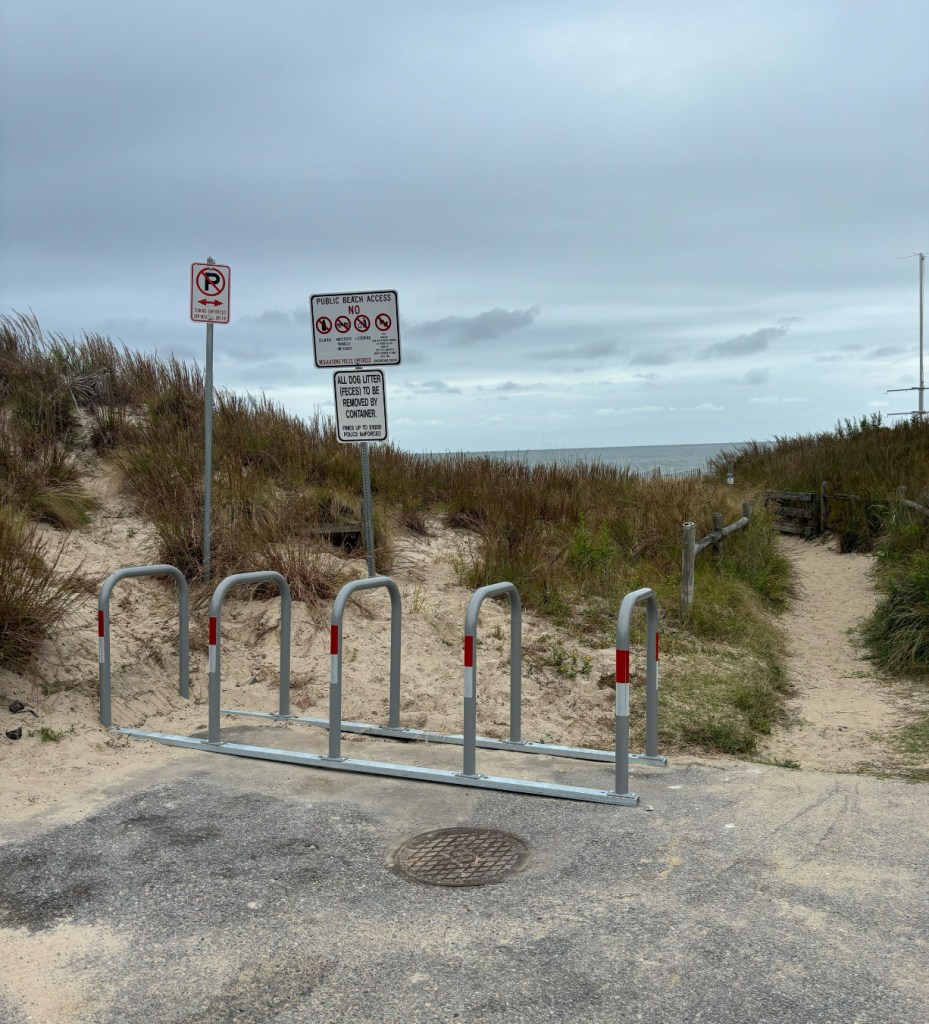 After a long wait (huge thanks to former OPCL President and BAC commissioner Martin Thomas for advocating for this!), bike racks have been installed at select beach accesses!