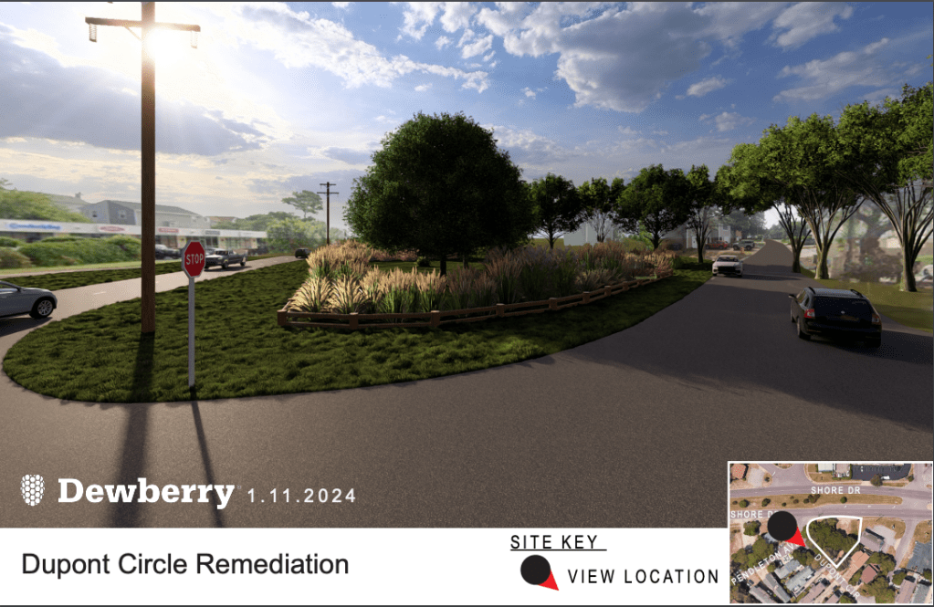 Councilman Joash Schulman sends an update on the Virginia Natural Gas plan for the property on the corner of Shore Dr. and Dupont Circle. VNG purchased the property and then stripped it of the Live Oaks. Councilman Schulman has worked with VNG representatives to relay the community’s displeasure and as a result the company offers this beautification plan. He shares a rendering of what they intend to do. VNG met last week with the City Planning Department for a pre-construction meeting. Work will start in the next 2-3 weeks and last 3-4 days. Councilman Schulman invites anyone who has questions to contact him.