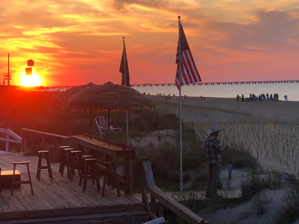 At first it looked like the sun would not hit the bridge pilings but in the end we had a beautiful sunset right on target enjoyed by all who gathered to watch! See you out there this summer!