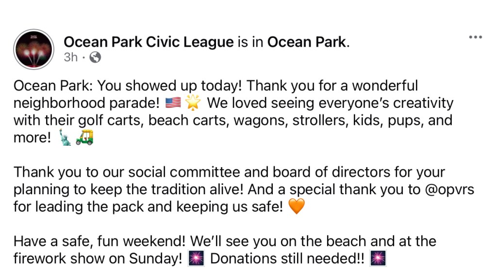 ”Β Sunday July 6thΒ β VBPD had their mobile command vehicle onsite for the Chicks Beach Fireworks.”