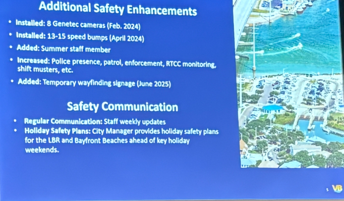 “Parks and Recreation partnered withΒ Va. Beach Police, and Emergency Management and added Garda World security personnel to the Lynnhaven Boat Ramp holiday operations. We had a DCJS armed security guard with a marked SUV onsiteΒ from 8:00pm to 2:00am on FridayΒ andΒ Saturday night. Security personnel were tasked with providing a presence in cooperation with the police department to address any potential security concerns over the weekend. This was very successful. Security personnel were able to keep regular vehicles out of the trailer parking lot and helped to defuse a situation between two boaters returning to the ramp. They were able to manage the situation very professionally and called the police to assist.”Β